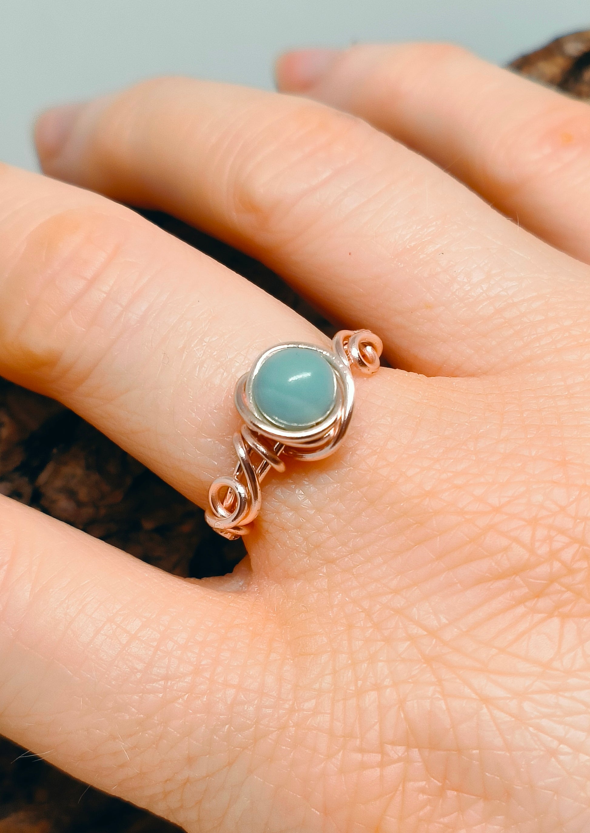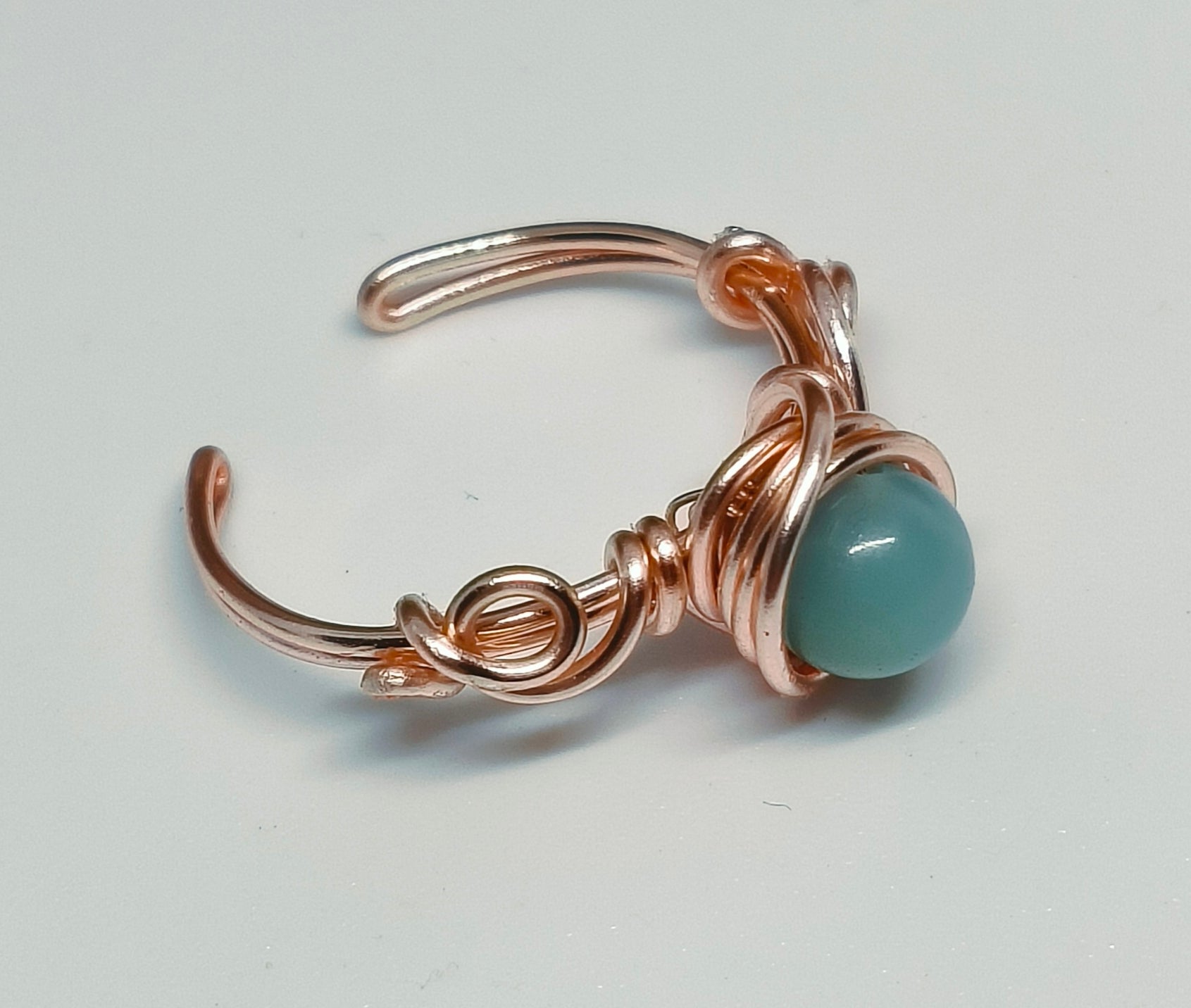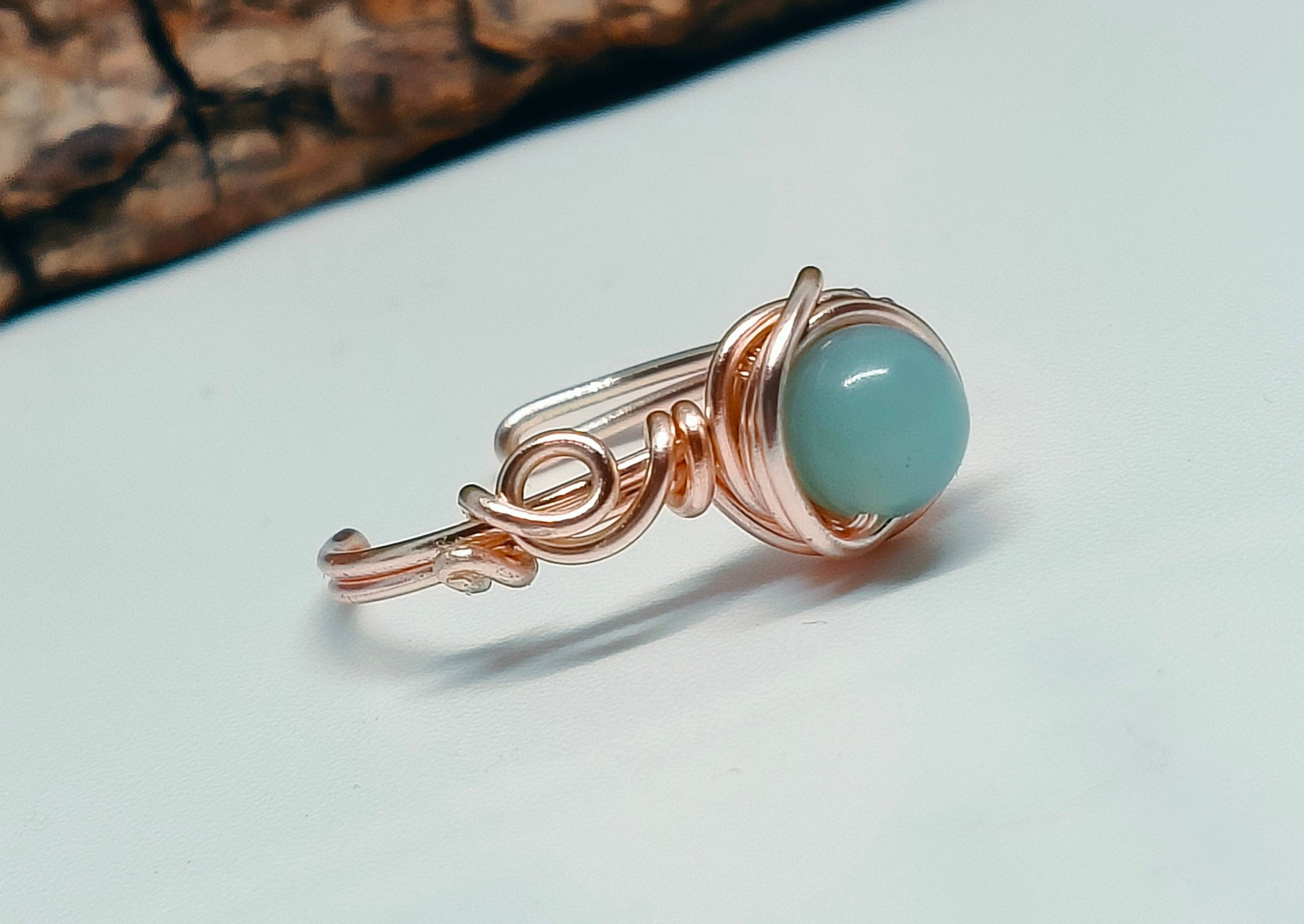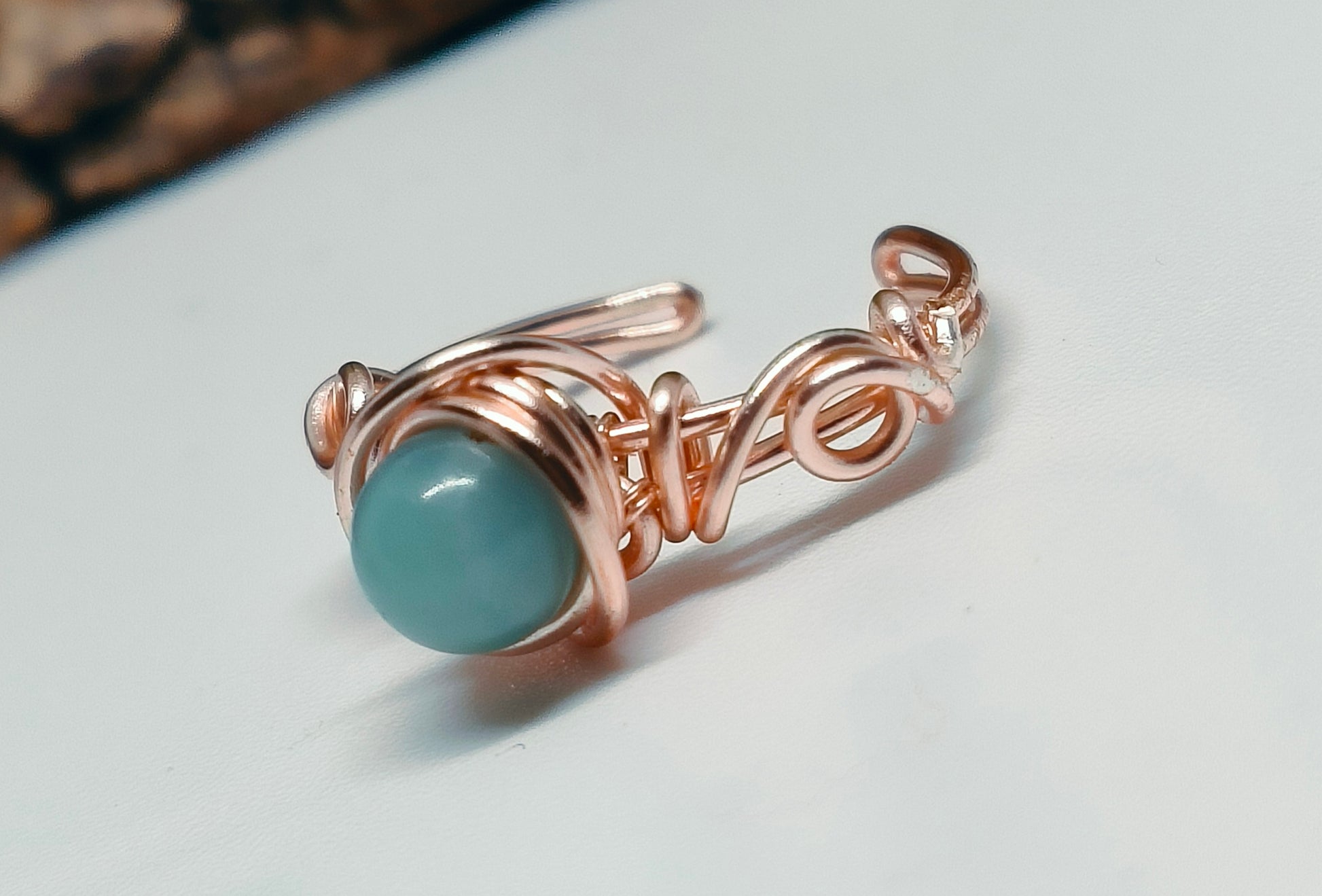 Elevate your spiritual style with our Amazonite adjustable ring. Made with Amazonite and rose gold copper, this ring is not only beautiful but also promotes balance, harmony, and inner peace. Perfect for those seeking a deeper connection with themselves and the world around them.
