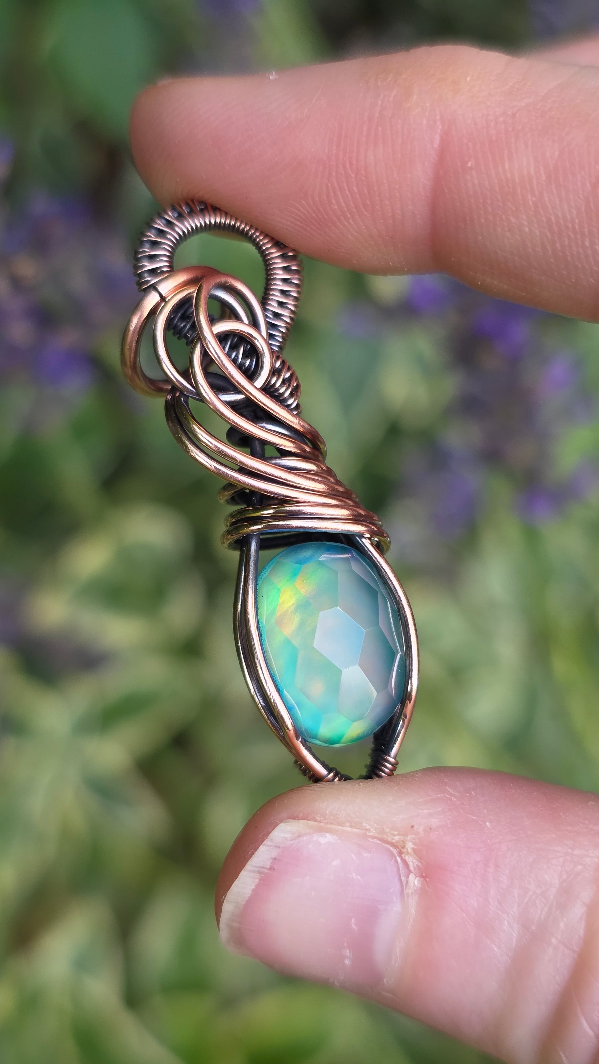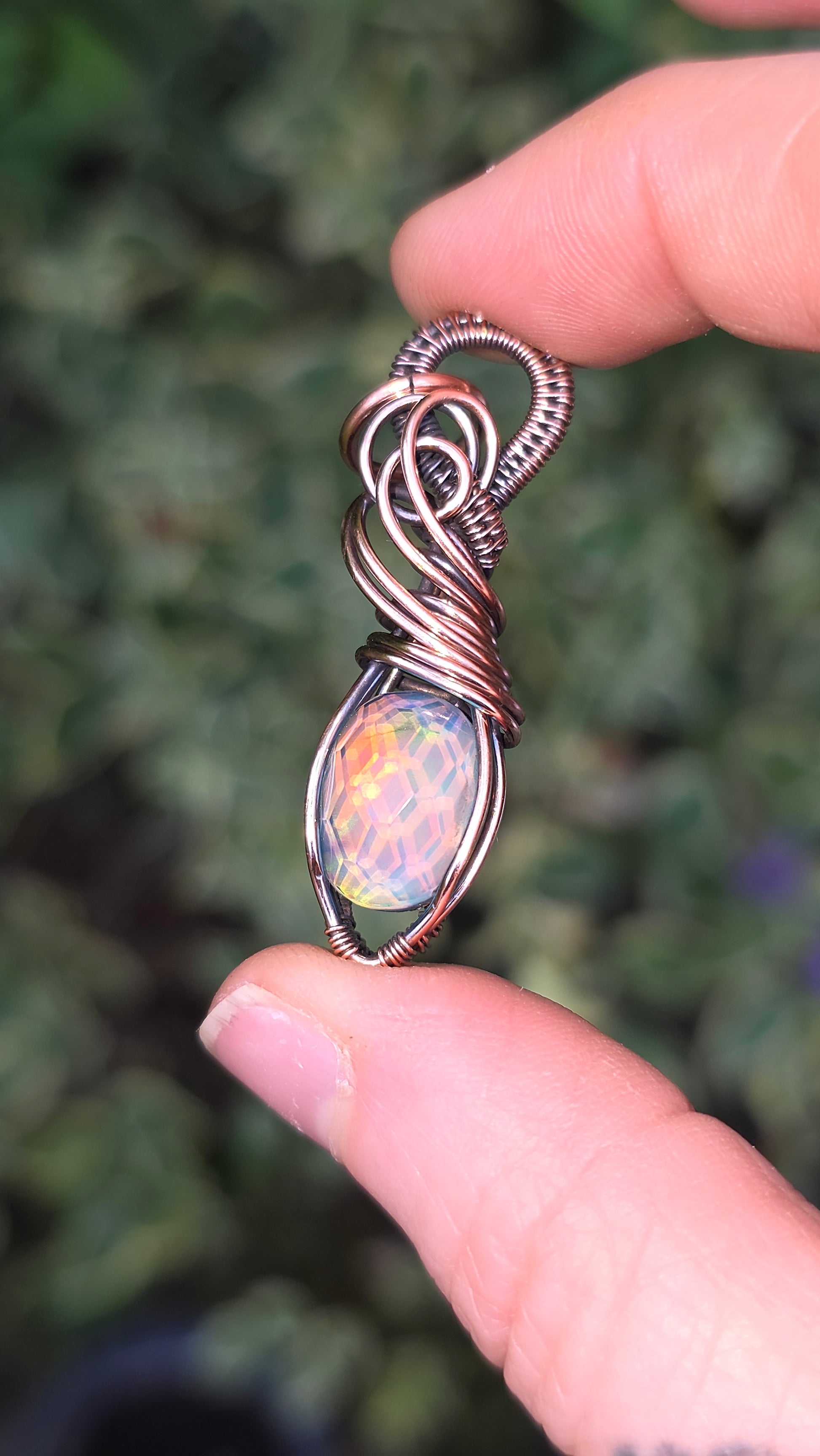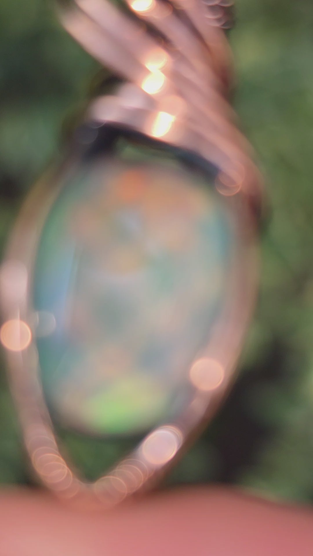 Elevate your spirituality with the stunning Aurora Opal Copper Pendant. This unique and exquisite pendant features a mesmerizing Aurora Opal set in a delicate copper frame, radiating a serene energy that will enhance your inner peace and balance. Embrace a deeper connection with yourself and the universe with this powerful and beautiful pendant.