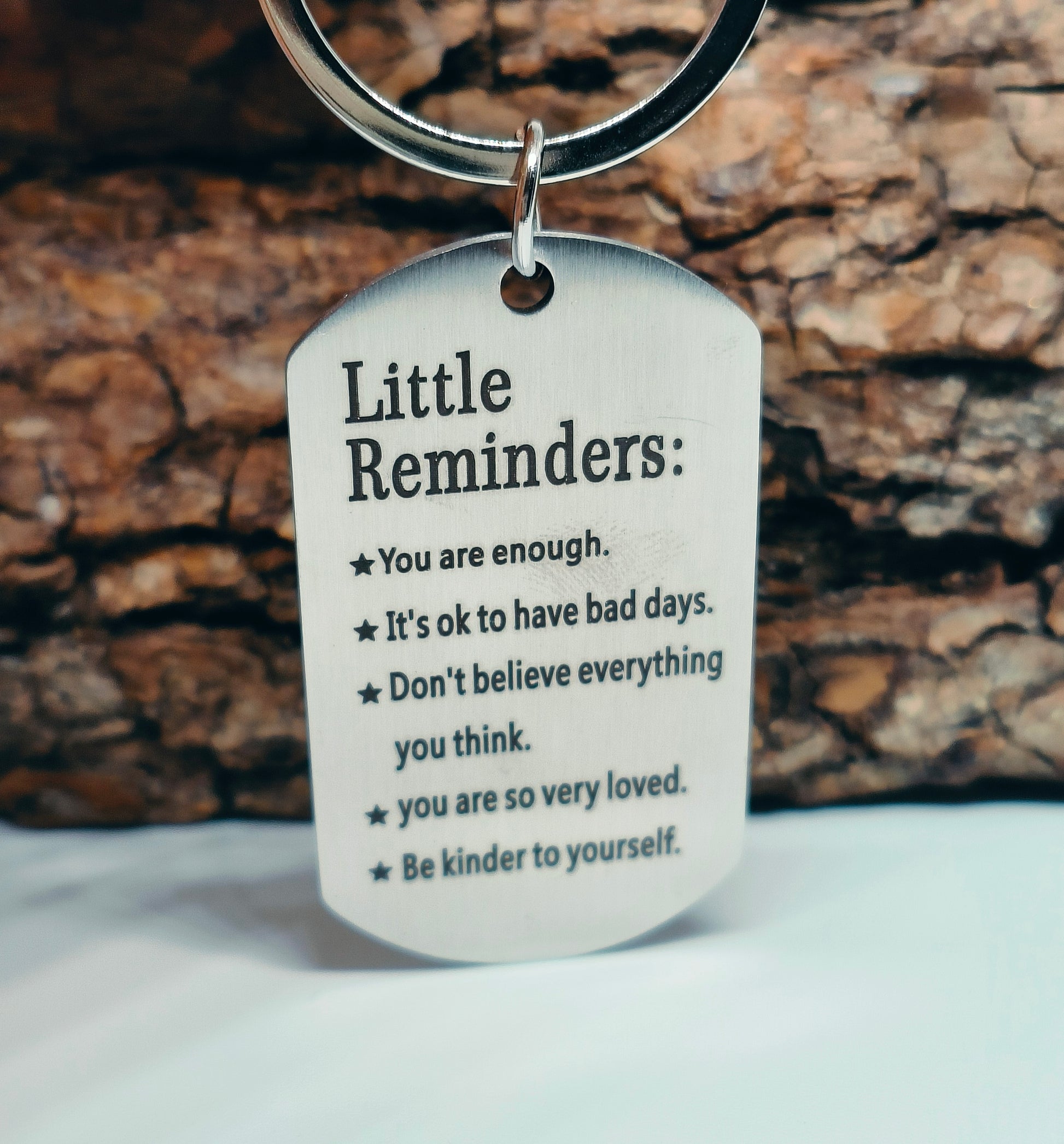 Self-love starts with self-care. Keep yourself inspired with our "Little Reminders" keychain, perfect for attaching to your keys or bag. Each keychain features small reminders to love and appreciate yourself. Take care of yourself with this simple yet meaningful accessory.