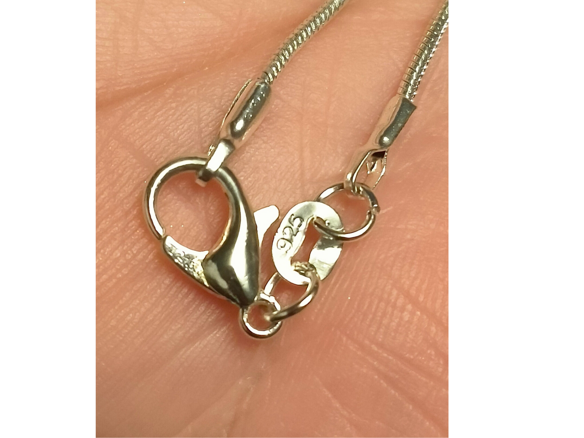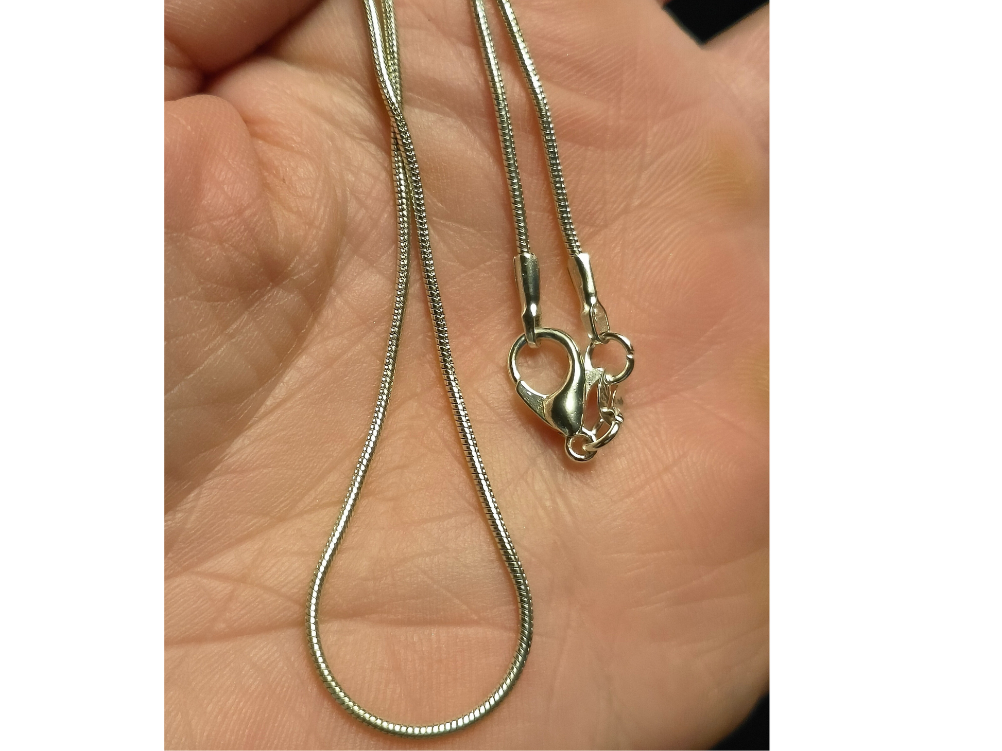 Glimmer and shine with this stunning sterling silver snake chain. Crafted from luxurious sterling silver, the chain offers a subtle sparkle thanks to its unique texture. Perfect for adding a bit of spiritual glamour to any outfit.